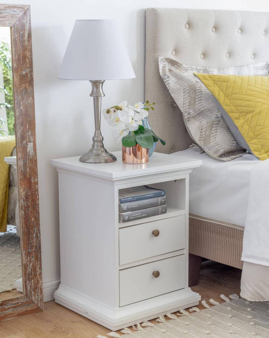 Este velador es, sin duda, la pieza insigne del estilo Clásico. Con terminaciones tipo moldura y manillas doradas, es perfecto para ponerlo junto a una cama con respaldo capitoné.