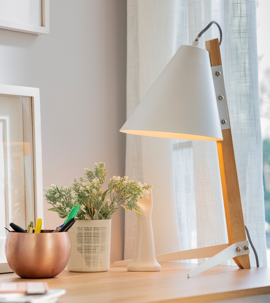 Cuando llegue la noche puedes utilizar lámparas de mesa con luz LED para iluminar tu zona de trabajo y así no forzar tu vista.